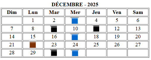 Vidange, mardi: nord de la 6e ave, jeudi: sud de la 6e ave,2025, sapin de Noël 6 janvier, feuilles le 6 mai et le 10 novembre