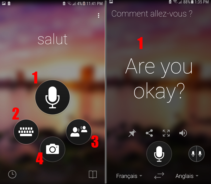3- bien pratique en voyage parlez en français de votre côté et votre interlocuteur le lit dans sa langue de l'autre côté. Puis il vous répond dans sa langue et vous lisez sa réponse en français.